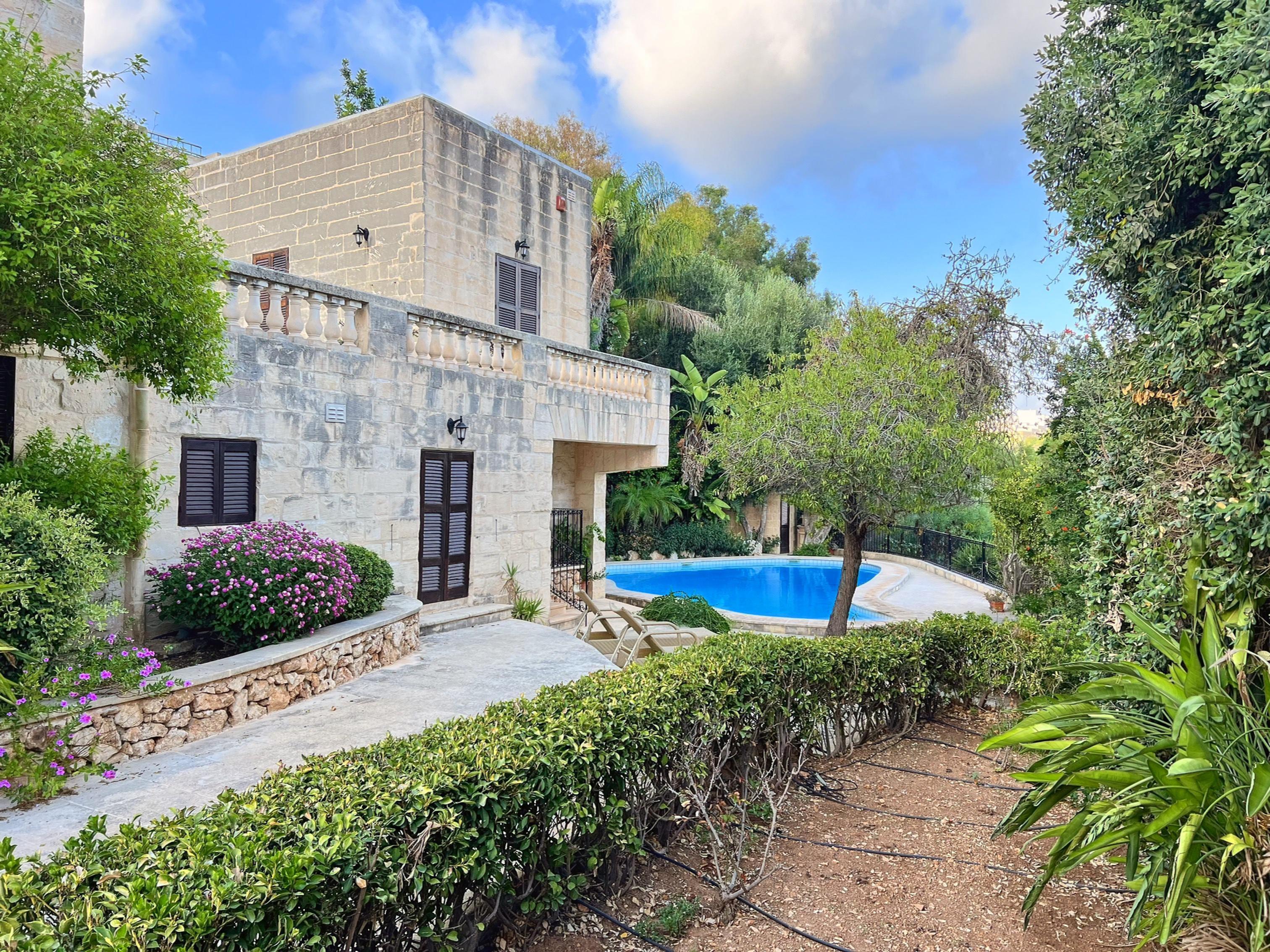 Welcome to Casa Livia – a breathtaking, fully detached luxury villa in Mosta, blending 300 years of history with refined modern comforts. Surrounded by 3,000 sqm of Mediterranean gardens, a large deep-water pool, and elegant terraces, this property is a rare gem offering privacy, sophistication and creating an oasis of tranquility.